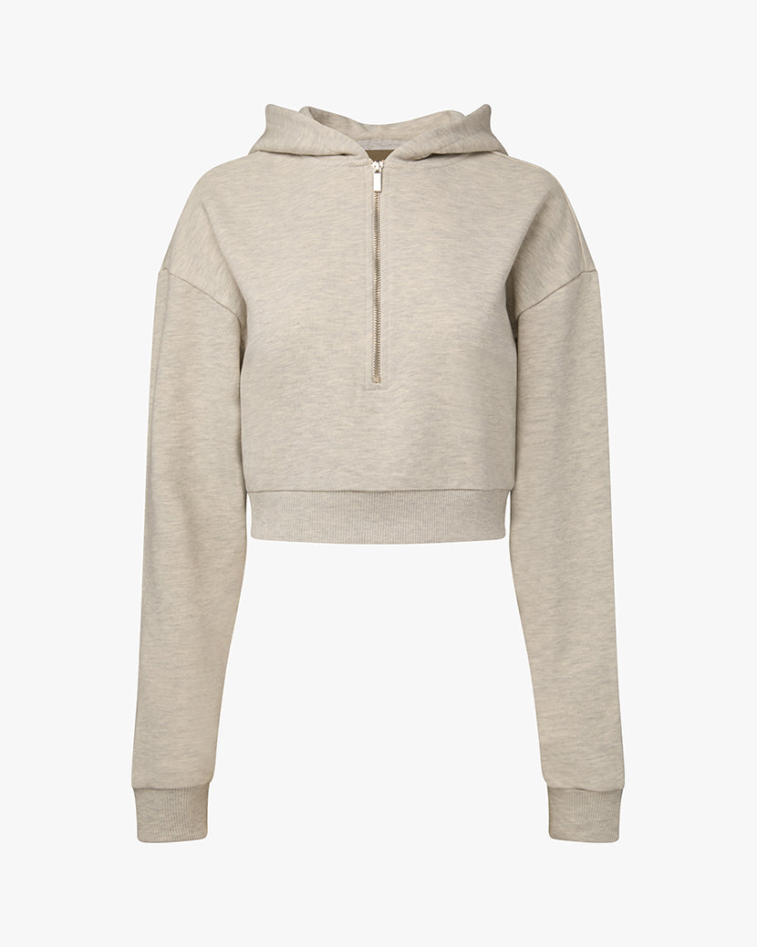 This cropped half-zip is made from cozy fleece that's especially soft to the touch. It’s designed for a relaxed fit, with an oversized hood and ribbing at the hem and cuffs.