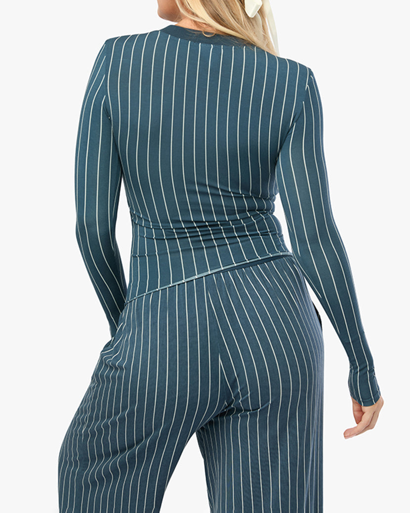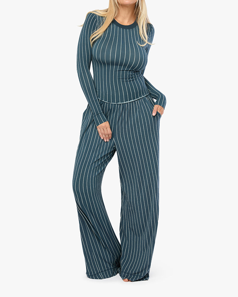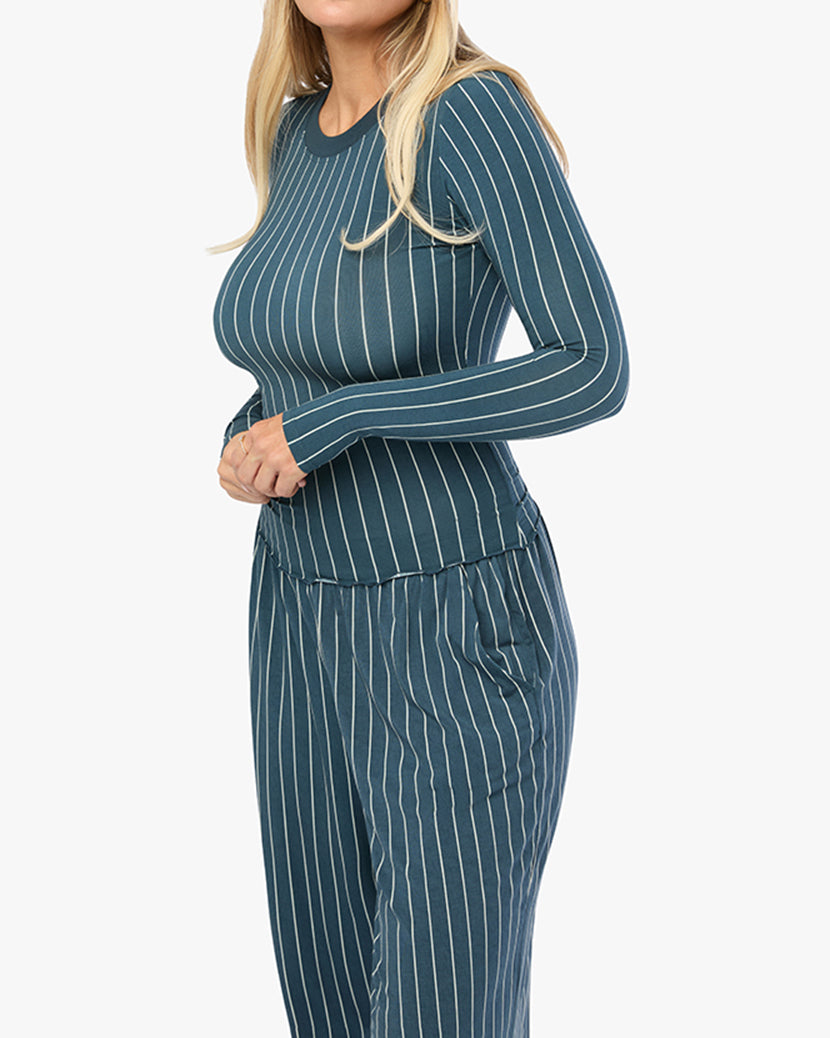 The Long Sleeve Crewneck Top is styled with the Wide Leg Pant.